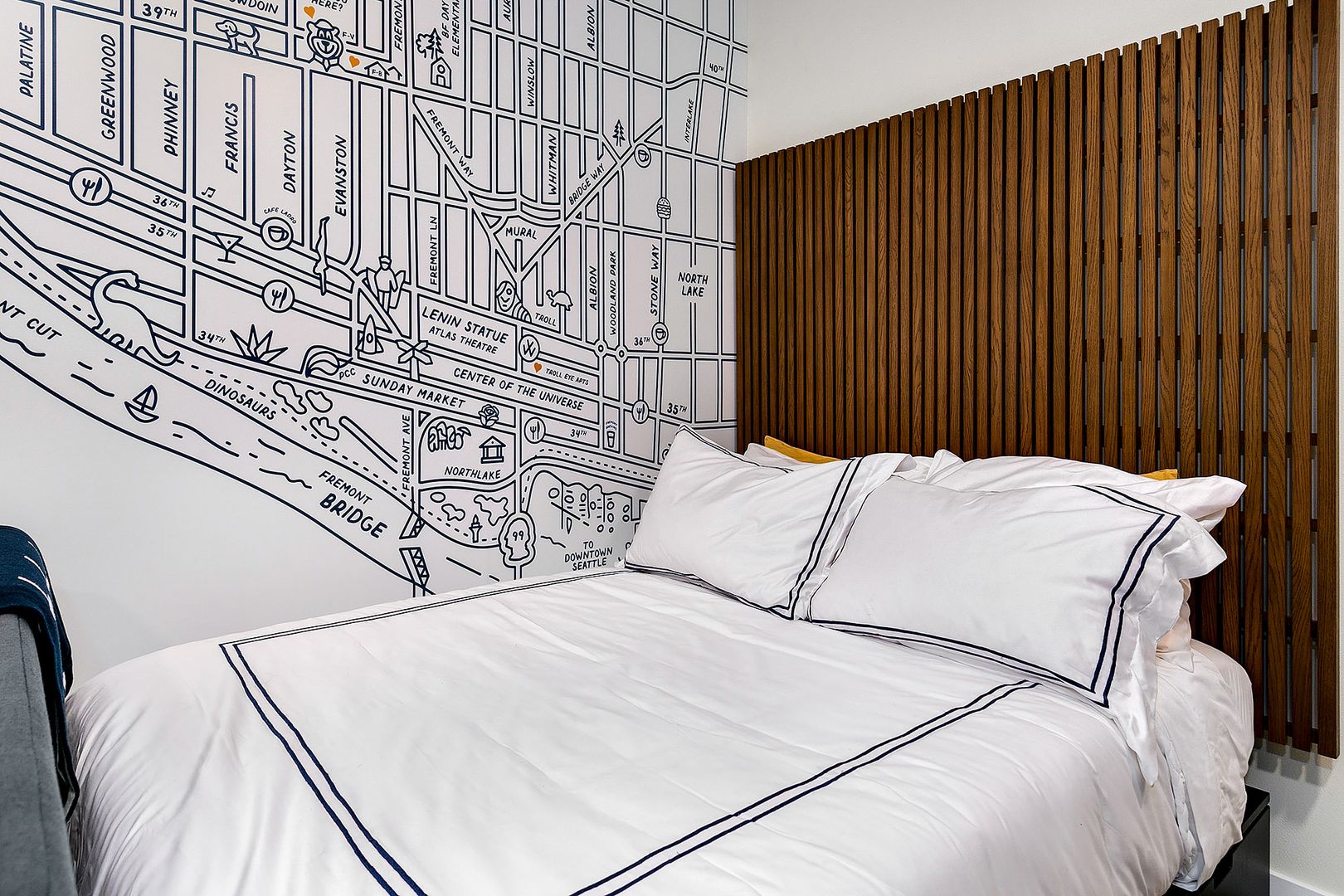 Nearby bike paths connect to Lake Union, Center for Wooden Boats, and MoPOP