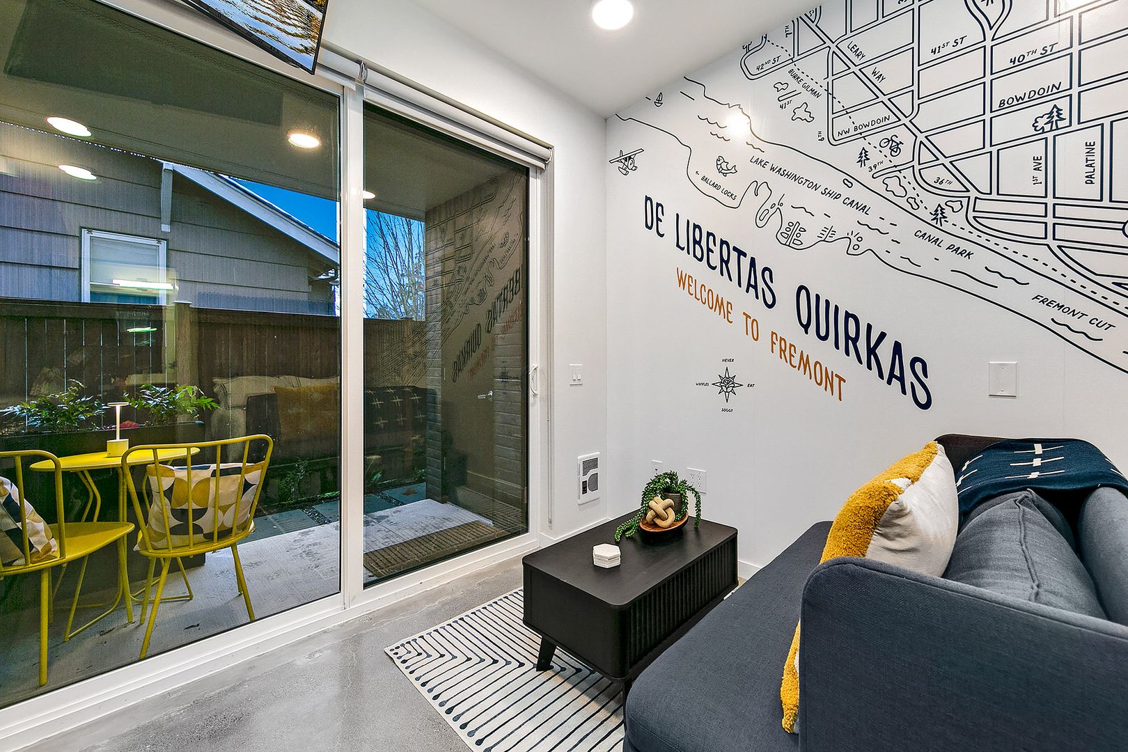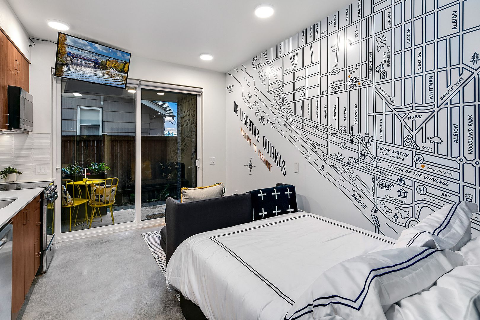 A hidden gem for those who take the road less traveled, Apartment #102 offers total privacy in a lush setting, unlike hotels or typical apartments. Arrive with just your luggage—everything is ready for effortless living. Nestled on a bluff and accessible only by a pedestrian stairway, this fully furnished, mid-century modern-inspired studio is a private retreat in the heart of Fremont—Seattle’s Center of the Universe.