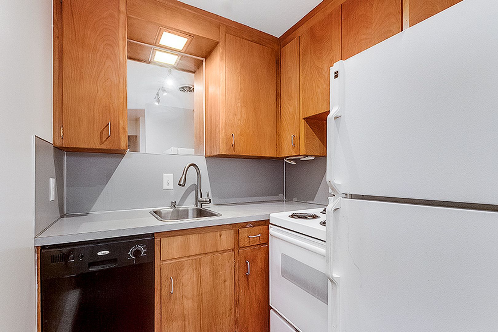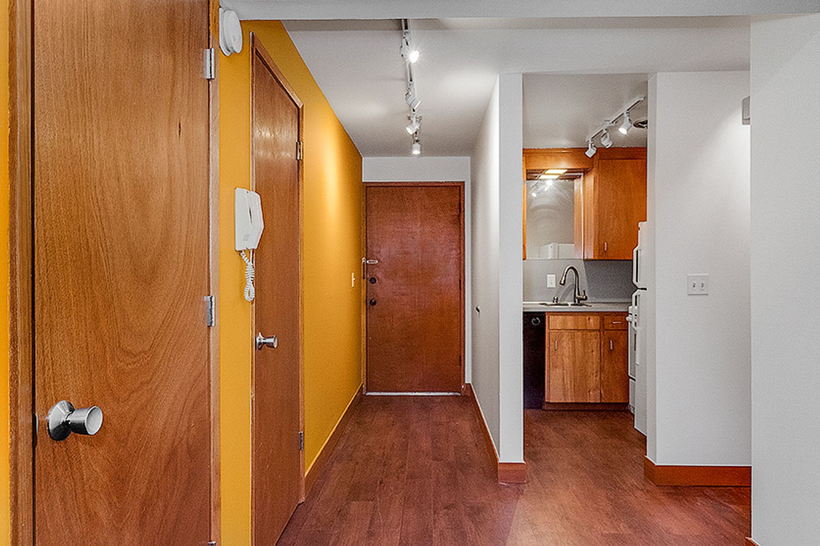 Spacious mid-century studio apartment with open floor plan, western exposure, and views of the Olympic Mountains. Luxuriate in the tranquility of a quiet, tree-lined residential street. Savor the panoramic vistas from the floor-to-ceiling windows (Olympic Mountains, seaplanes landing on Lake Union, crimson sunsets, iconic Seattle bridges). Explore the vibrant neighborhood brimming with organic markets, indie boutiques and outdoor recreation areas.