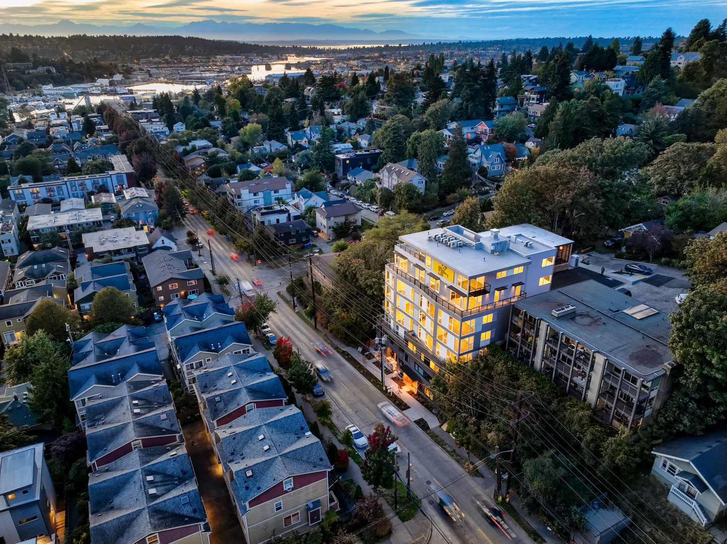 The Modern Classic Collection is a new, boutique, mid-century modern inspired building located in the Center of the Universe (aka Fremont). You’ll know that you’ve arrived in the Center of the Universe when you look out the floor-to-ceiling glass windows, or rest on your private deck to drink in the incredible views. The Seattle skyline, Mount Rainier, the Olympic Mountains and the intricate metalwork of the Aurora Bridge span the horizon.
