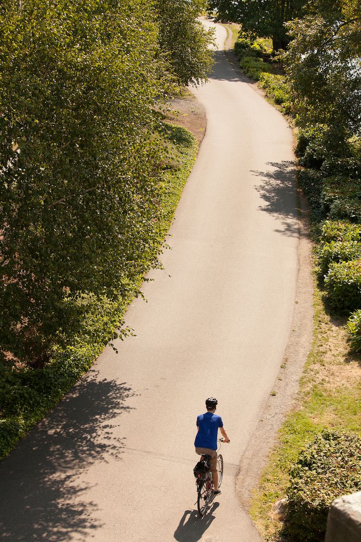 Nearby bike paths connect to Lake Union, Center for Wooden Boats, and MoPOP