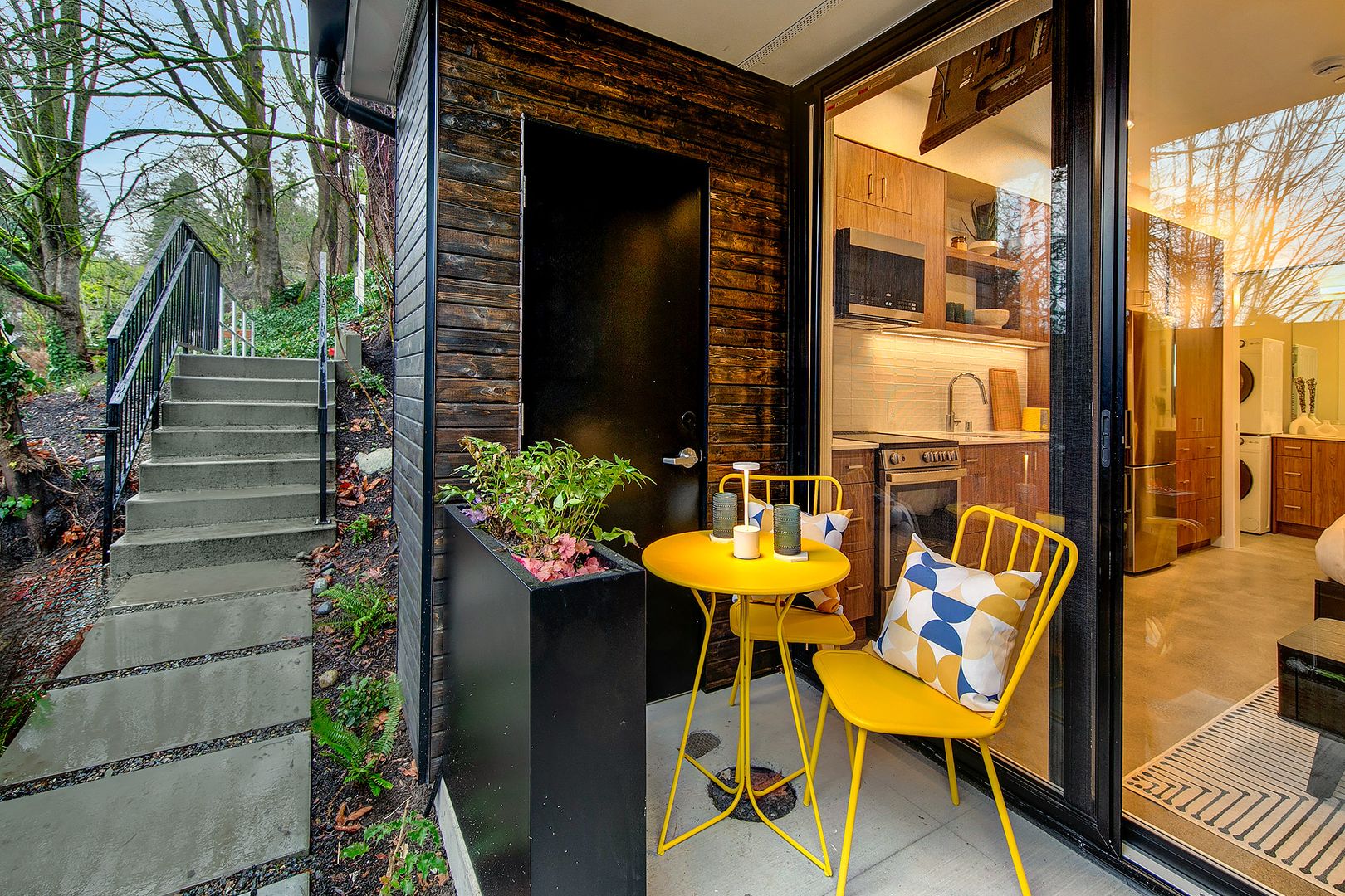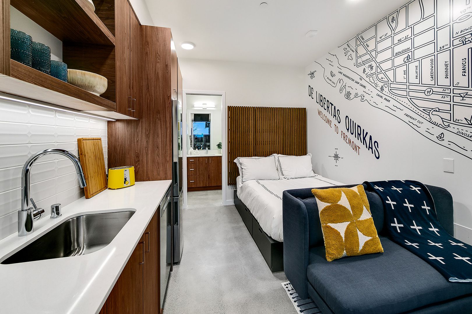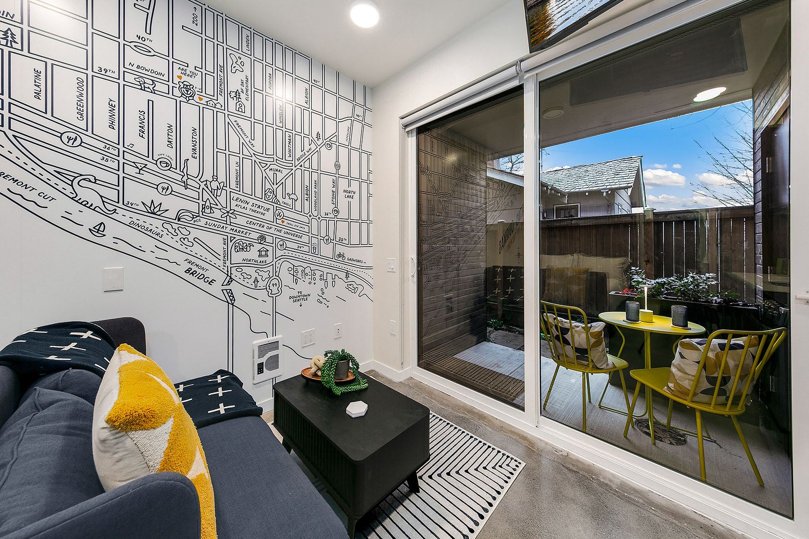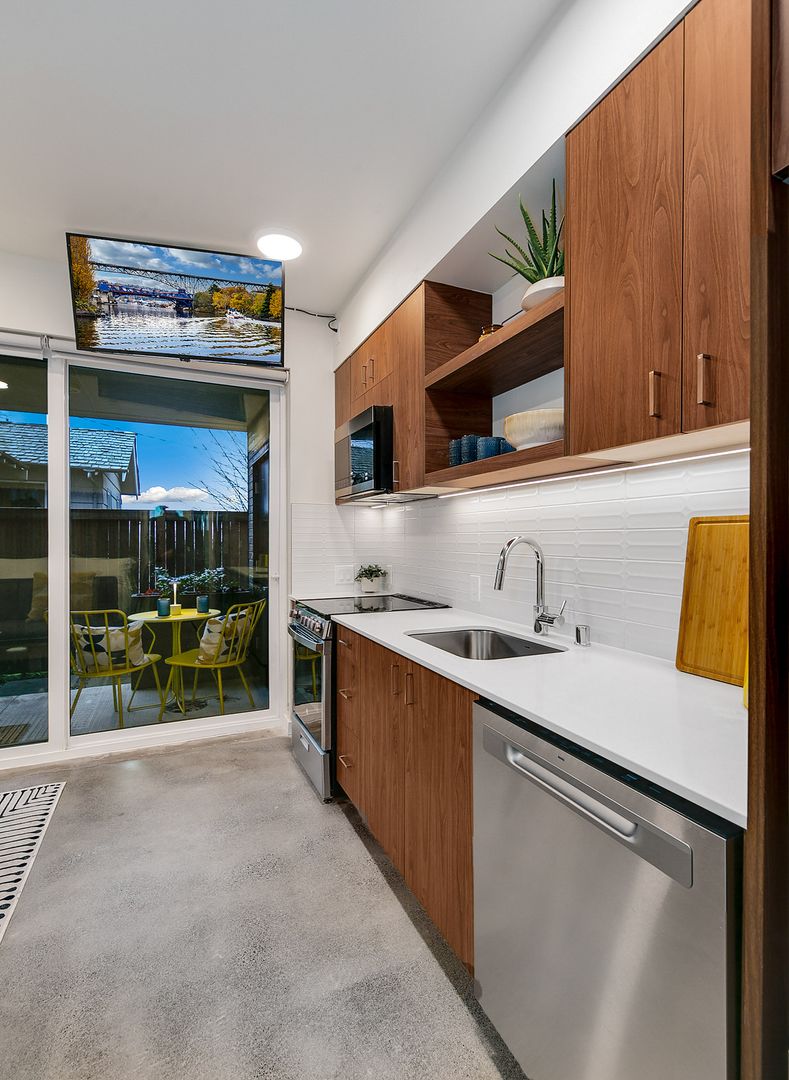 A hidden gem for those who take the road less traveled, Apartment #101 offers total privacy in a lush setting, unlike hotels or typical apartments. Arrive with just your luggage—everything is ready for effortless living. Nestled on a bluff and accessible only by a pedestrian stairway, this fully furnished, mid-century modern-inspired studio is a private retreat in the heart of Fremont—Seattle’s Center of the Universe.